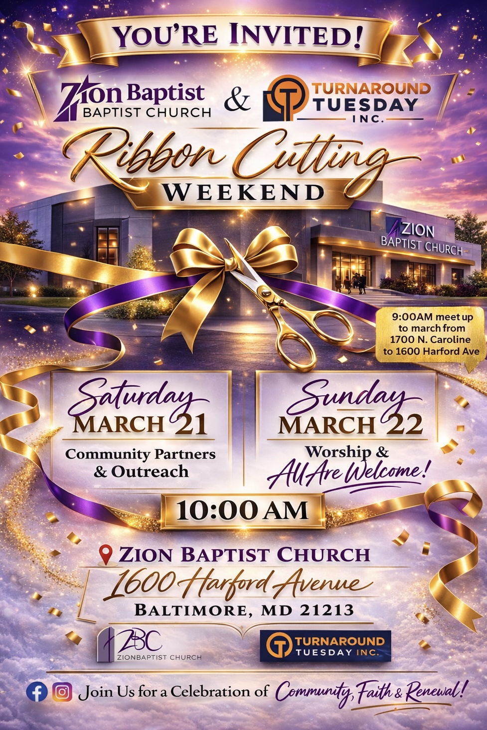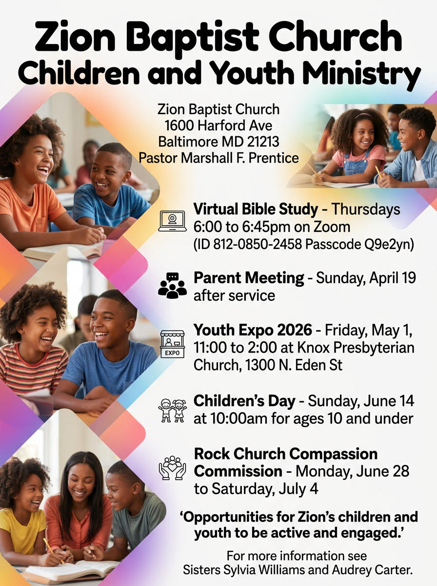 Outreach Ministry: Serving the Baltimore community through food drives, clothing donations, and volunteer work.